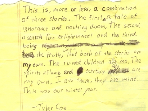 The set-up: post-humans, save one, the "save one" stumbles across a guitarist's equipment. As luck and my fantasy would have it, this fictional guitarist owned a looping device. And what would music then sound like? (I was 18.)